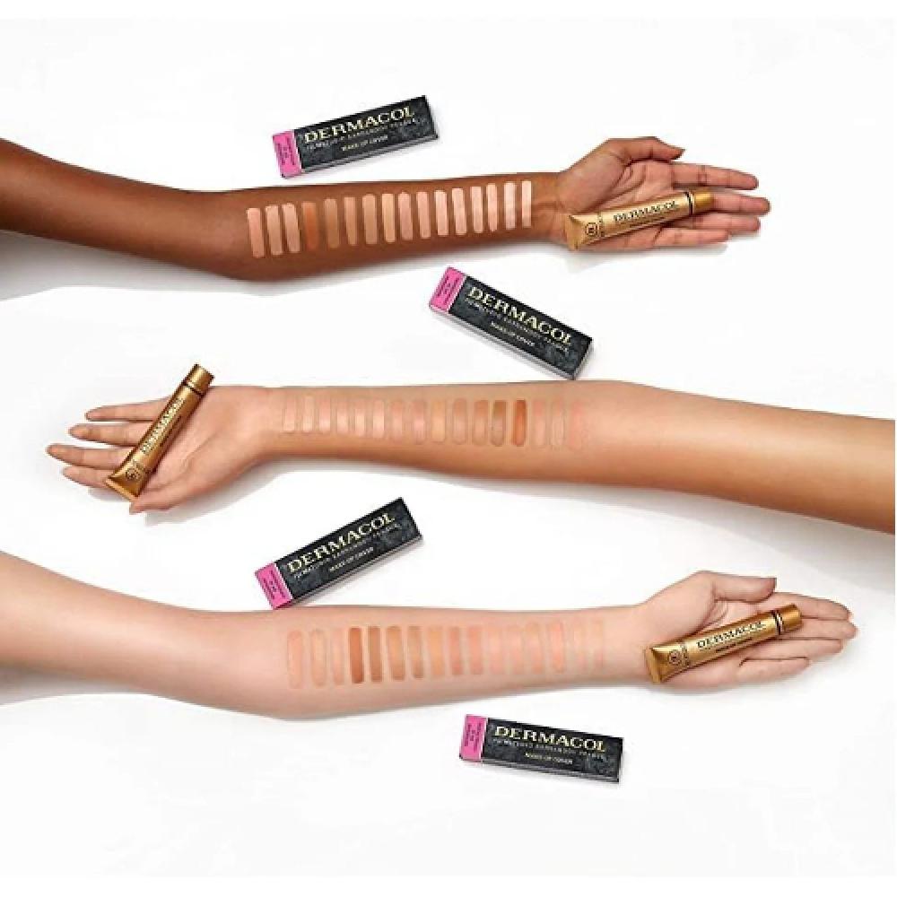 ضعي كمية قليلة من كريم أساس ديرماكول بأستخدام الأصابع او أسفنجة المكياج.